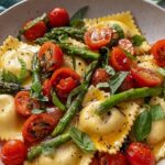 When you want a dish that feels light yet satisfies every craving for freshness and comfort, this Ravioli with Tomatoes, Asparagus, Garlic, and Herbs Recipe is your go-to. Combining tender cheese or spinach-stuffed ravioli with the vibrant burst of cherry tomatoes, crisp asparagus, and fragrant herbs, it’s a celebration of springtime flavors in every bite. The garlic-infused olive oil ties everything together, with a touch of lemon juice adding just the right amount of zing. Whether it’s a weeknight dinner or a casual weekend feast, this dish brings a beautiful harmony of taste and color to your table effortlessly.