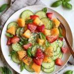 Try serving this salad in hollowed-out melon bowls or stacked neatly in clear glass parfait cups for an elegant touch. Layering the fruit and cucumber in tidy rows before tossing can also make the colors pop beautifully.