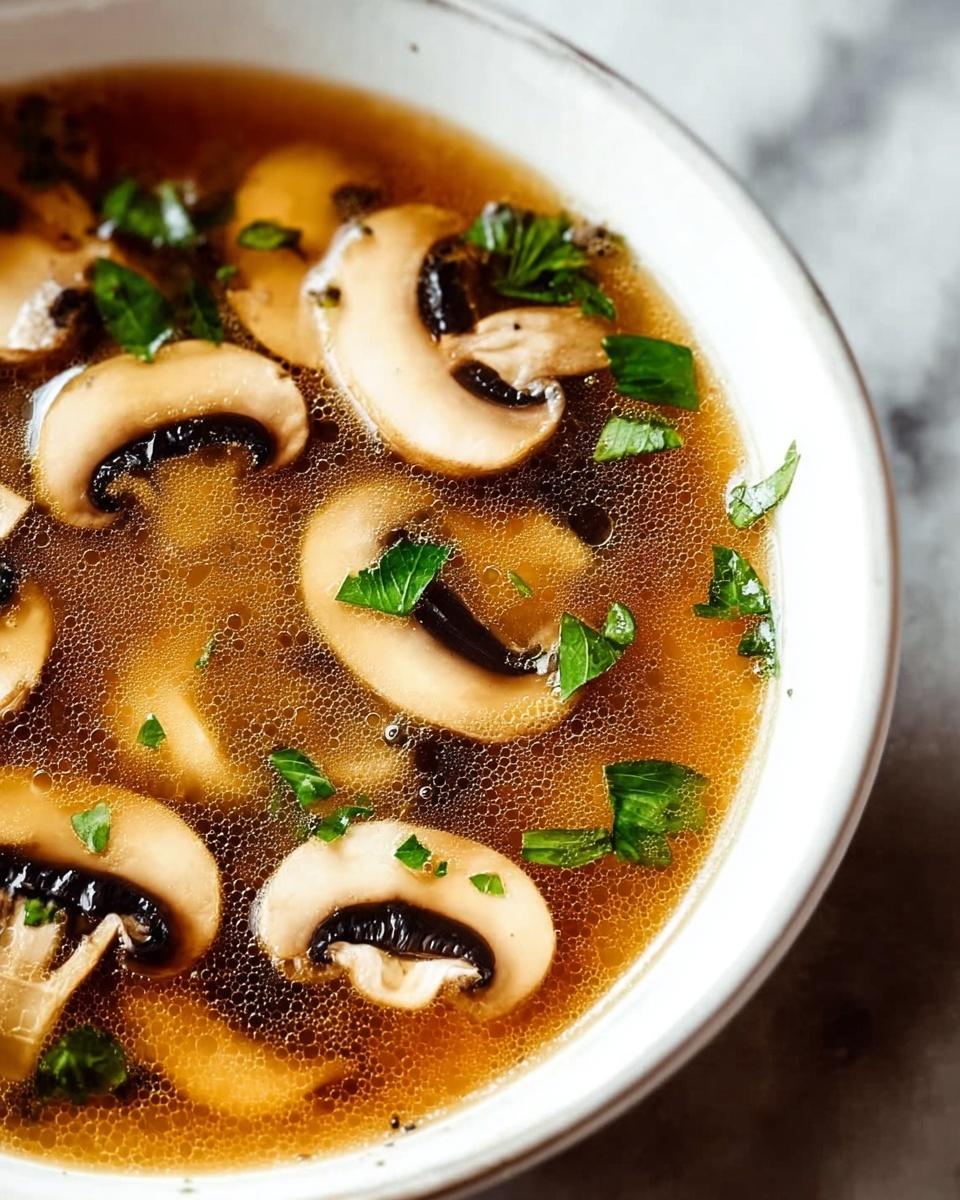 Fresh parsley is your go-to garnish for this soup, adding a pop of green and a fresh herbal note that complements the earthiness of the mushrooms. If you want to get creative, a sprinkle of grated Parmesan or a few drops of truffle oil can elevate the experience even further.