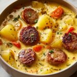 This comforting Sausage Potato Soup combines spicy or mild Italian sausage with tender potatoes and a creamy broth. Packed with garlic, onions, and greens like kale or spinach, it’s a hearty, flavorful soup perfect for cozy dinners. The soup is creamy yet lightened up with half-and-half if preferred, making it an adaptable, satisfying meal.