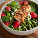 This fresh and vibrant Strawberry Chicken Salad with Mint & Goat Cheese is a perfect light meal combining juicy strawberries, tender cooked chicken, tangy goat cheese, and aromatic mint. Tossed in a simple balsamic honey dressing and topped with toasted nuts, this gluten-free salad offers a delightful balance of sweet, savory, and refreshing flavors ideal for a quick lunch or dinner.