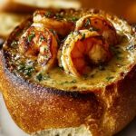 This Stuffed Seafood Bread Bowl recipe combines succulent shrimp, crab meat, and scallops mixed with creamy cheese and flavorful seasonings, all baked inside a hollowed-out bread bowl. Perfect as a comforting, indulgent meal, this dish showcases a rich seafood filling baked to golden perfection, garnished with fresh parsley for a delightful finish.