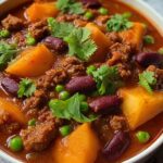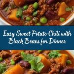 This Sweet Potato Chili is a hearty and flavorful vegetarian dish that combines tender sweet potatoes, black and pinto beans, and a blend of spices including chili powder and cocoa powder for depth. Simmered in a rich tomato and vegetable broth base and thickened with masa harina, this chili offers a comforting meal perfect for cool evenings. Topped with fresh cilantro, lime juice, and classic garnishes like sour cream and avocado, it’s a satisfying, vibrant meal for six.