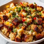 Sprinkle chopped fresh parsley or sage over the baked stuffing for a burst of color and herbaceous freshness. You can also add toasted nuts like pecans or walnuts on top for extra crunch and a nutty flavor that pairs beautifully with the earthy herbs.