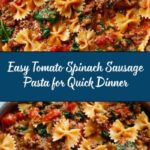 Serve the pasta in shallow bowls to showcase the vibrant colors of the sausage and spinach. For a special touch, add an edible flower or fresh microgreens on top. If you love sharing, serve it family-style in a large, rustic serving dish where everyone can dig in and enjoy the cozy, inviting vibe this Tomato Spinach Sausage Pasta Recipe creates.