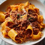 Pappardelle and rigatoni are favorites because their broad or ridged surfaces hold onto the chunky meat sauce perfectly. However, you can also enjoy it with spaghetti, gnocchi, or polenta for a comforting and delicious experience.