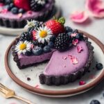 This Vegan No Bake Blackberry Tart is a refreshing and creamy dessert perfect for summer. Made with a crunchy Oreo cookie crust and topped with luscious mixed berries, it requires no oven, making it a quick and easy treat. The tart combines non-dairy cream cheese and whipping cream for a smooth, dairy-free filling, enhanced with natural vanilla and sweetened to taste. A delicate touch of agar powder helps set the filling without gelatin, keeping the dessert entirely vegan.