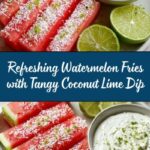Enjoy a refreshing and unique snack with these Watermelon Fries paired perfectly with a tangy Coconut Lime Dip. This no-cook recipe combines the sweet juiciness of watermelon with the zesty twist of Tajin seasoning and a creamy, citrusy coconut yogurt dip that’s sure to delight your taste buds during warm weather or as a fun appetizer.