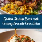 Serve your Yummy Grilled Shrimp Bowl with Avocado Corn Salsa and Creamy Sauce Recipe immediately while everything is fresh and vibrant. Each bite offers a perfect blend of smoky, creamy, tangy, and fresh flavors that make this bowl an unforgettable experience. Get ready for all the compliments!